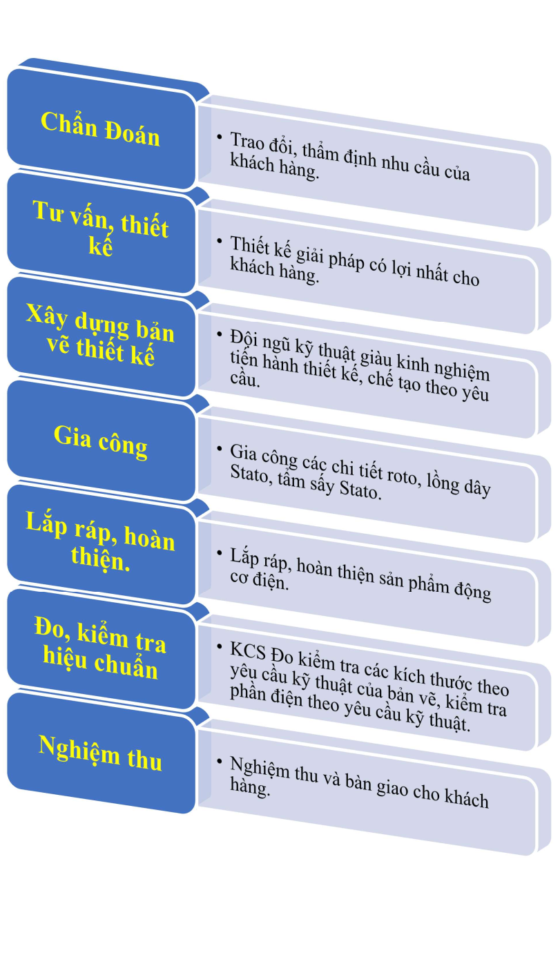 Để đáp ứng nhu cầu sản xuất động cơ điện theo nhu cầu của khách hàng. Công ty TNHH Cơ Khí Toàn Phát nhận tư vấn, chế tạo động cơ điện theo yêu cầu của quý khách hàng, mời các bạn cùng tham khảo quy trình sản xuất động cơ điện theo yêu cầu của khách hàng: