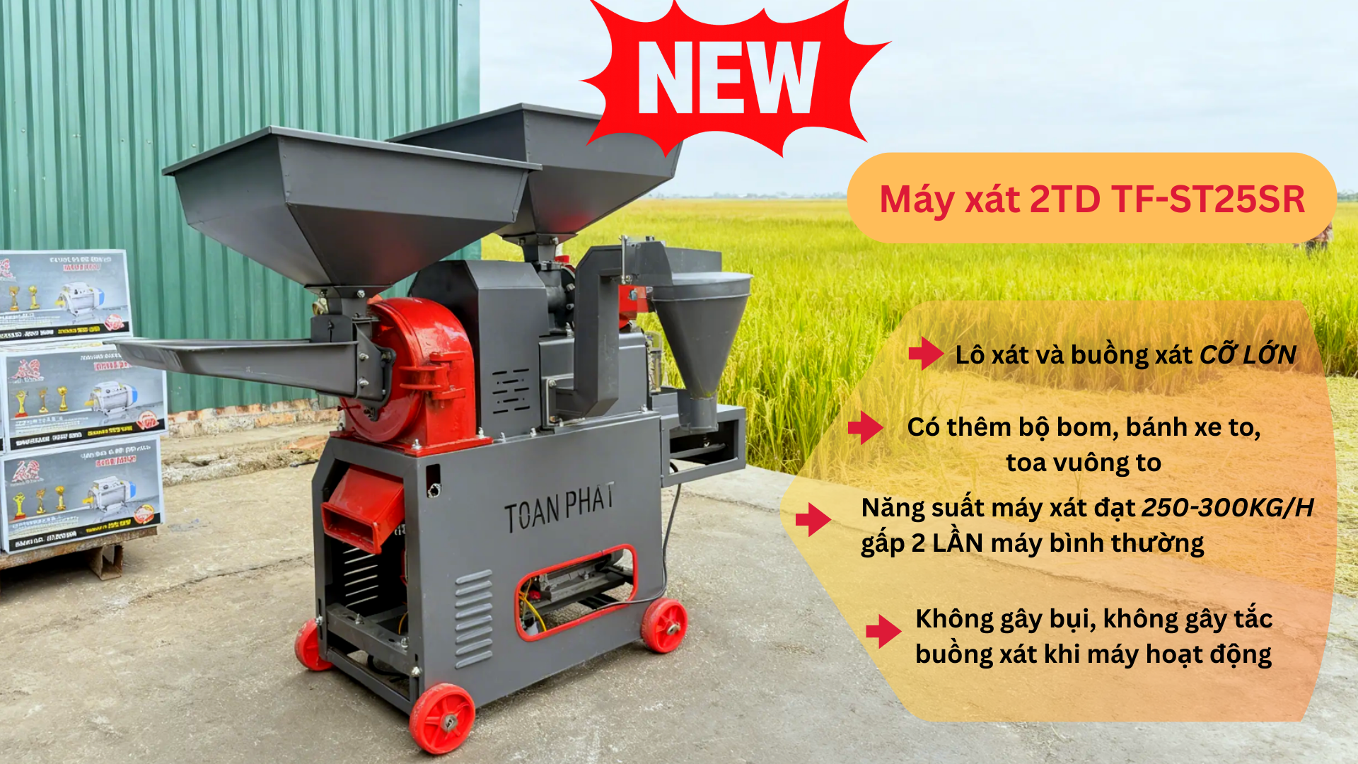 Máy Xay Xát Gạo Toàn Phát TF-ST25SR: Máy xát gạo 2 chức năng gồm có: Xát lúa thành gạo, nghiền cám, xay vỡ ngô, lọc sạn. Là một trong những máy xay, xát gạo gia đình được ưa chuộng nhất hiện nay. Với giá thành không quá cao, bà con hoàn toàn có thể sở hữu sản phẩm này.
